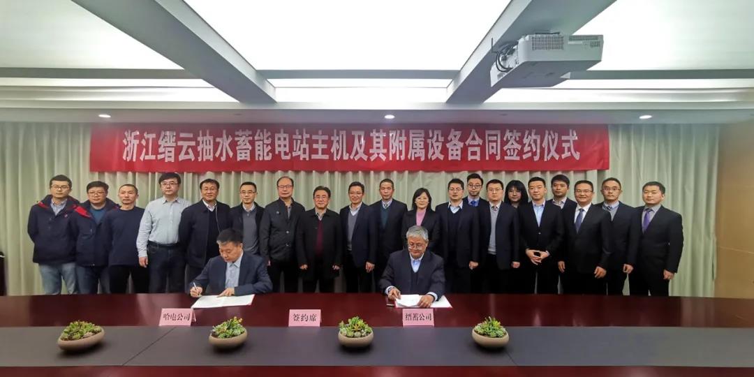 3月4日,哈電集團電機公司與浙江縉云抽水蓄能有限公司在浙江杭州完成項目合同談判,哈電電機黨委副書記、總經理劉玉強,浙江縉云抽水蓄能有限公司黨委書記、董事長章品勛分別代表雙方公司完成項目簽約,電站全部6臺單機容量300兆瓦抽水蓄能機組及其附屬設備大成套項目被哈電電機囊括。
