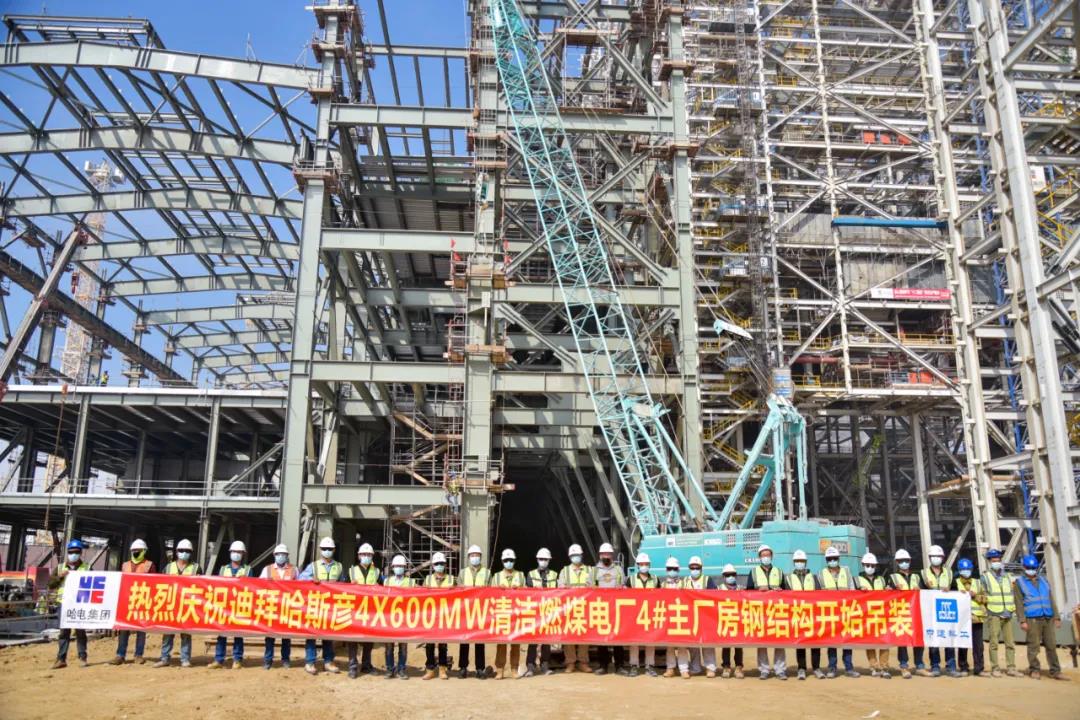 當地時間2月15日上午10時10分,哈電集團國際公司承建的迪拜哈斯彥4×600MW清潔燃煤電站項目四號主廠房順利完成第一根鋼結構的吊裝就位工作,標志著迪拜哈斯彥項目四號主廠房安裝工作正式開始。