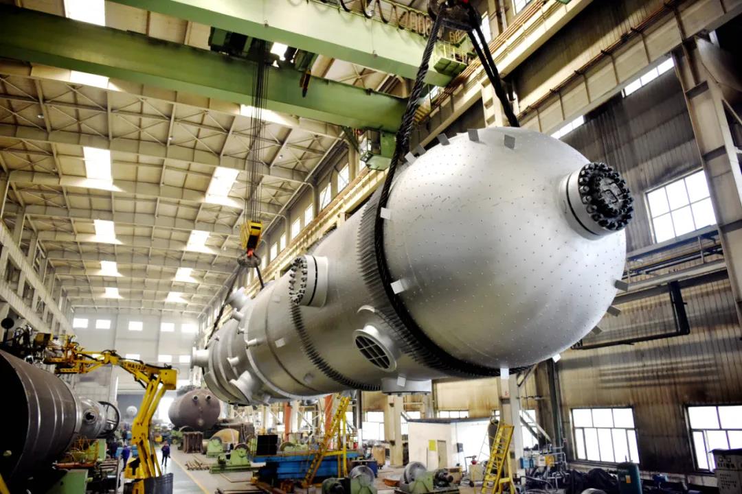 在鍋爐公司重容分廠,“國和一號228示范工程”的核電機組項目正在緊張施工。“國和一號228示范工程”CAP1400機型是我國擁有自主知識產權的三代核電技術產品,該項目共有兩臺機組,鍋爐公司負責設計制造其高加、除氧器裝置。重容分廠內還有多個這樣的項目正在同時施工。在4月份,重容分廠的單月產能基礎重量達1412噸,刷新了鍋爐公司建廠以來單月的產能紀錄。