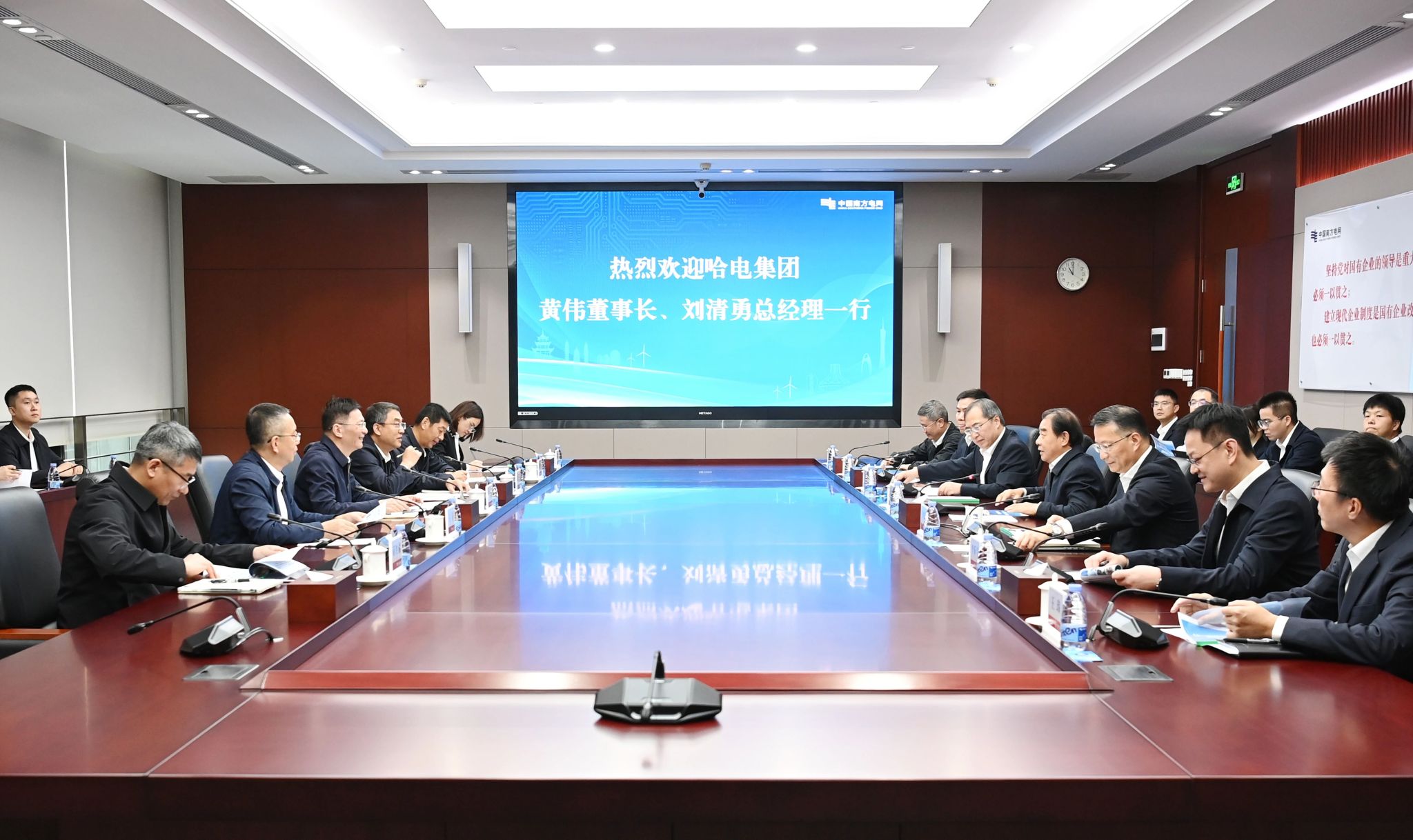 10月22日,哈電集團董事長、黨委書記黃偉,總經(jīng)理、黨委副書記劉清勇率隊拜訪南方電網(wǎng)公司,與南方電網(wǎng)公司董事長、黨組書記孟振平,總經(jīng)理、黨組副書記錢朝陽舉行會談,雙方就進一步深化戰(zhàn)略合作等方面進行深入交流。南方電網(wǎng)公司黨組成員、副總經(jīng)理王紹武參加會談。黃偉向南方電網(wǎng)公司一直以來給予哈電集團的支持和幫助表示感謝,并介紹了哈電集團產(chǎn)業(yè)布局和生產(chǎn)經(jīng)營情況。他表示,南方電網(wǎng)公司是哈電集團的重要戰(zhàn)略合作伙伴,哈電集團期待在雙方良好合作基礎上,...
